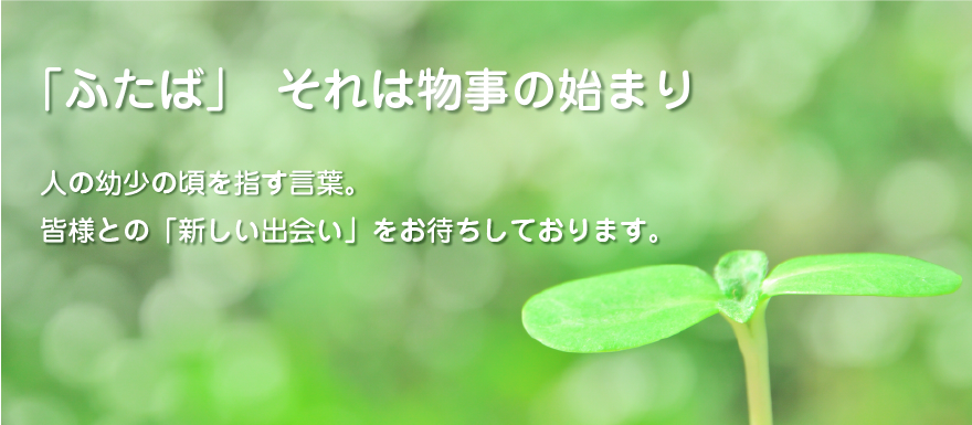 「ふたば」それは物事の始まり、人の幼少の頃を指す言葉。皆様との「新しい出会い」をお待ちしております。
